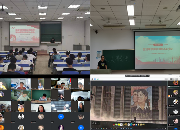 19级本科生四个团支部分别以“三湾改编”、“长征精神”、“党的一大”、“新中国成立”、“巾帼英雄赵一曼”等为主题,通过线上线下等方式开展宣讲,带领全体青年大学生深入学习党史,重温党的故事、革命故事、英雄故事,厚植爱党爱国情怀,让红色基因代代传承。