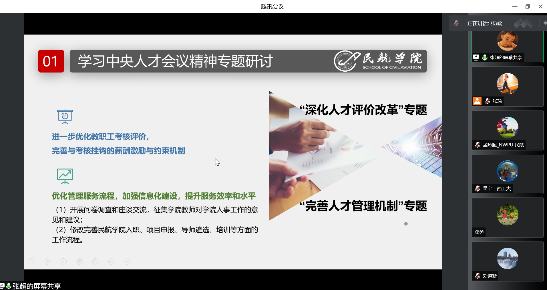 在线上召开人才工作专题研讨会。学院各研究中心主任、党支部书记、院长助理、中青年教师代表30余人参加了会议。会议由张超副院长主持。
