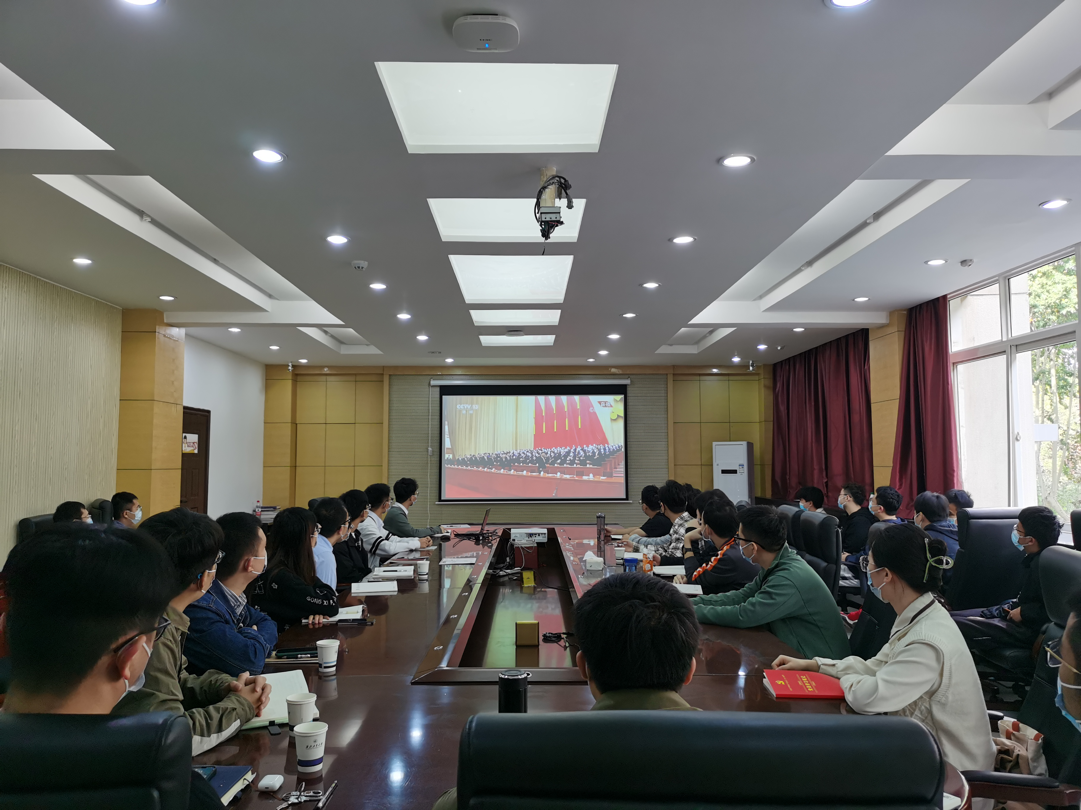 硕士和博士党支部党员在毅字楼218会议室观看开幕会直播
