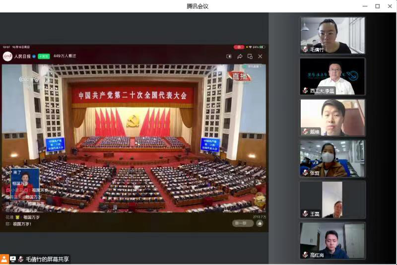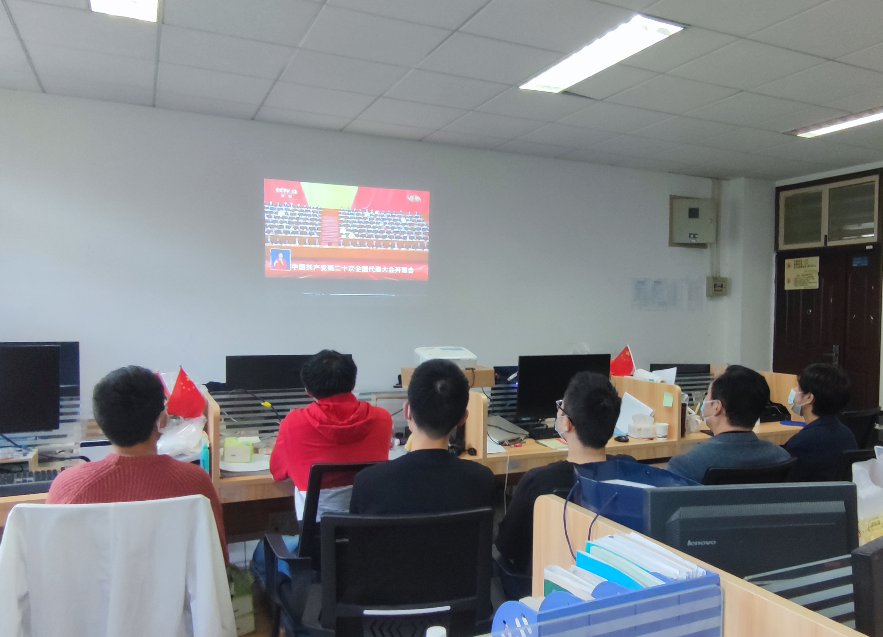 党总支理论学习中心组、学院领导班子以及全体师生党员通过电视、网络等形式观看党的二十大开幕会盛况,并展开热议。