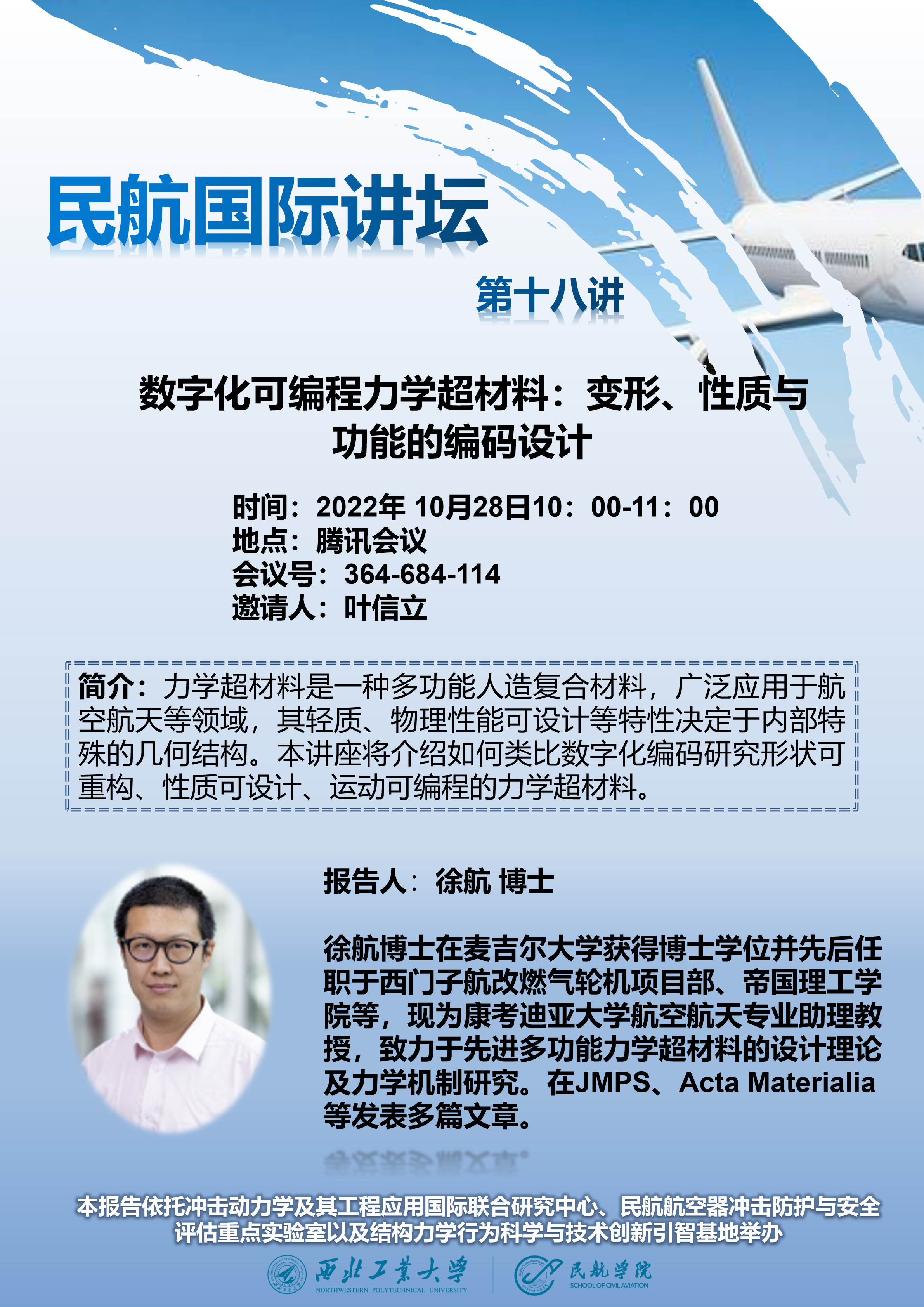 10月28号上午十点,美女视频 拟线上举办“数字化可编程力学超材料:变形、性质与功能的编码设计”专题讲座,届时欢迎各位老师同学参会交流。以下是讲座详细信息: