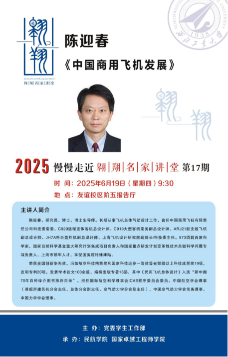邀请,我国飞行器设计领域权威专家、C929远程宽体客机总设计师、C919大型客机常务副总设计师、C909支线客机副总设计师陈迎春做客翱翔名家讲堂,在友谊校区阶五报告厅为广大师生作了题为《中国商用飞机发展》的精彩报告。本次报告由党委学生工作部主办,美女视频