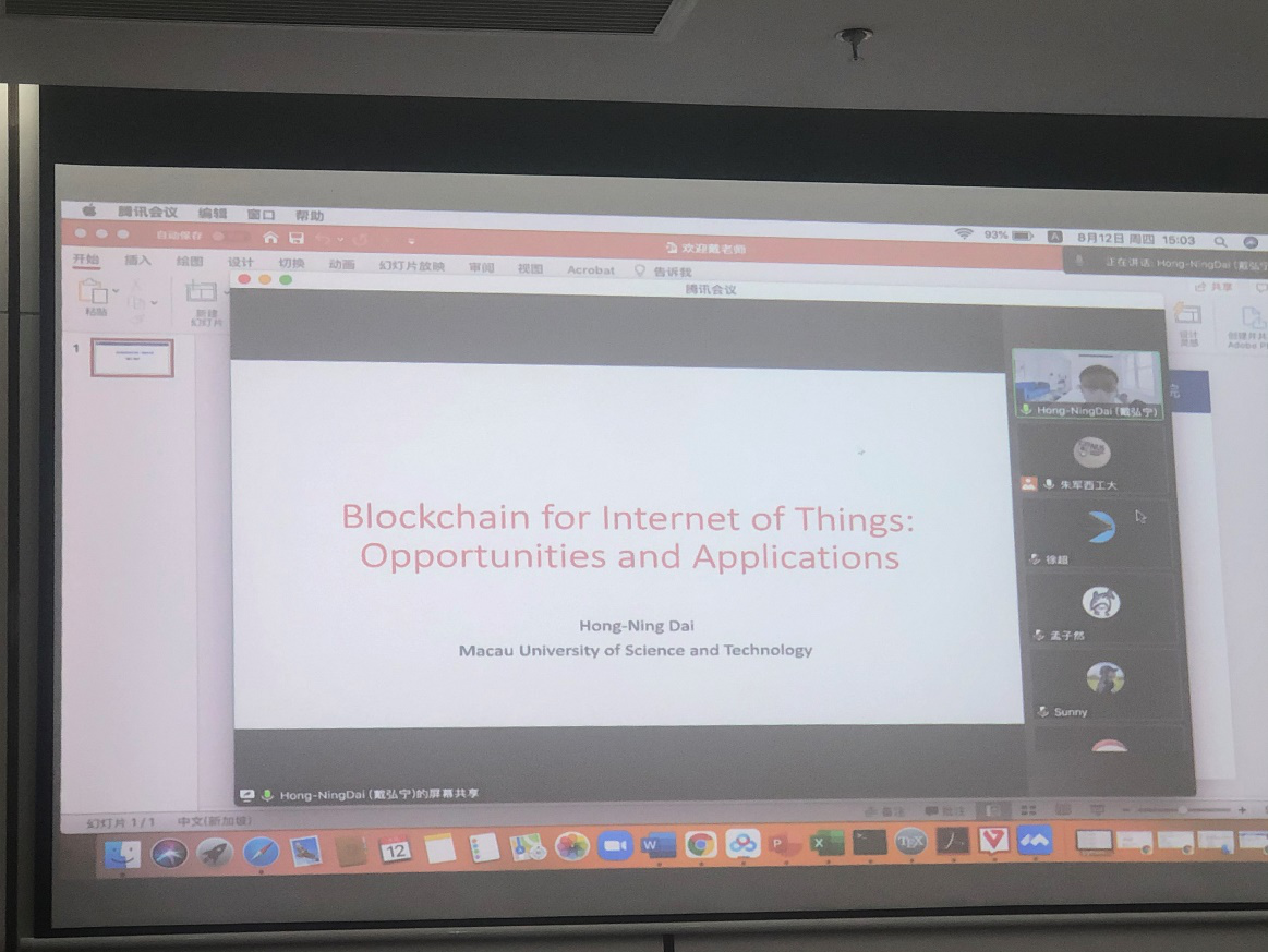 应美女视频 朱军副教授邀请,澳门科技大学戴弘宁副教授于2021年8月12日下午15:00至18:00开展了题为“Blockchain for Internet of Things: Challenges, Opportunities, and Applications”的线上讲座,来自美女视频 、湖南大学、日本东京大学、英国兰卡斯特大学等高校的师生通过腾讯会议参与了本次讲座。此外,本次讲座在太仓长三角研究院设立了线下会场,来自美女视频 、软件学院、微电子学院的20余名师生参加了此次讲座,并与主讲人进行了互动交流。