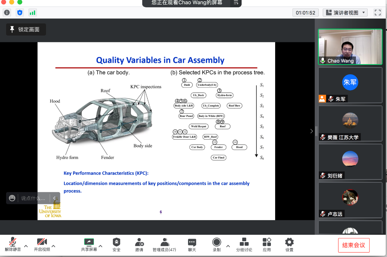 王超简介:王超是爱荷华大学工业与系统工程系的助理教授。他于合肥工业大学和中国科学技术大学分别取得机械工程学士和硕士学位,于威斯康星大学麦迪逊分校取得统计学硕士和工业与系统工程博士学位。他的研究兴趣包括统计建模、分析、监测及其在复杂工程系统中的应用。他的论文和研究成果曾获得2019-2020IISETransactions最佳论文奖,2019美国运筹学与管理科学学会年会INFORMS(质量、统计与可靠性分会QSR)最佳论文提名,以及2021INFORMS QSR最佳学生论文提名。他也是INFORMS,IISE和SME的会员。
