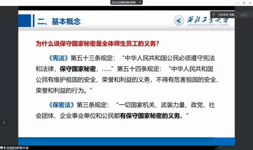 为提高全学院教职工的保密意识,营造“人人懂保密、人人会保密”的良好氛围,美女视频 于2022年1月7日和1月9日组织开展了保密专题培训。1月7日上午10:00,面向全院教职工,开展了保密基本知识宣讲和培训会议。会议由保密工作负责人谢发勤书记主持,由张超副院长作了保密基本概念及要求的宣讲,63名教职员工参加了本次会议。因受疫情影响,本次培训通过腾讯会议线上进行。