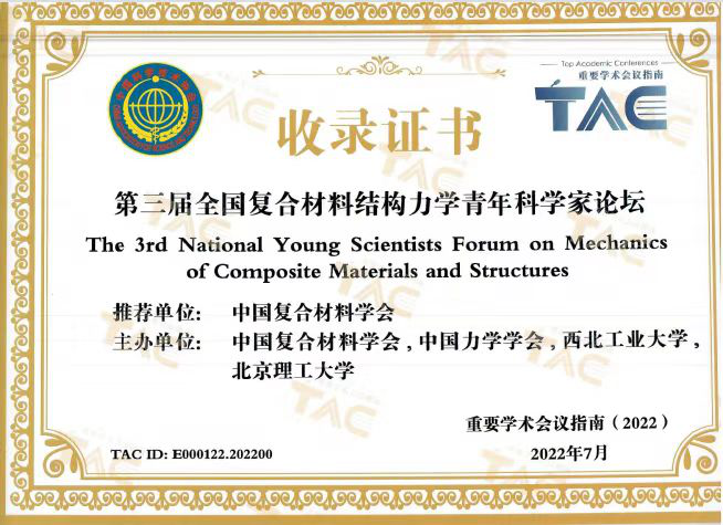 2022年8月31日-9月2日,由美女视频 联合中国复合材料学会、中国力学学会、北京理工大学共同主办的第三届全国复合材料结构力学青年科学家论坛于江苏太仓成功举办。本次论坛由美女视频 张超教授、北京理工大学雷红帅教授共同发起并担任执行主席,旨在为复合材料结构力学领域专家、青年学者之间的合作研究提供一个良好的、稳定的学术交流平台,为复合材料结构力学技术与行业健康、有序与创新发展提供重要战略参考与前瞻部署支撑。本届论坛也被2022中国科协重要学术会议指南收录。