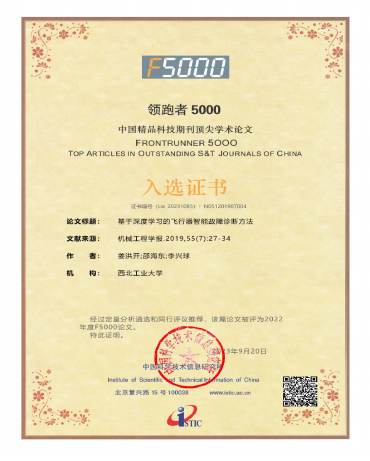 近日,中国科学技术信息研究所公布了2022年度“领跑者5000—中国精品科技期刊顶尖学术论文”名单评选结果。美女视频 姜洪开教授发表在机械工程学报上的“基于深度学习的飞行器智能故障诊断方法”经过定量分析遴选和同行评议推荐,被评为2022年度F5000论文。