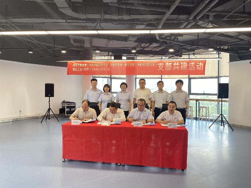 第一教工党支部、民航研究院党支部、机关党支部与航空工业计算所民机事业部党支部开展支部共建活动签约仪式,仪式在航空工业计算所千山园区民机科研楼举行。
