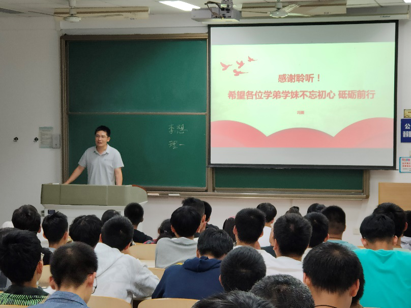 培训的第一阶段,冯璐同志主要介绍了发展党员工作总体要求、发展党员工作基本程序、以及发展党员个人准备事项三个方面。她首先介绍了党员发展工作的指导思想以及必须遵循的原则,随后详细讲解了发展党员的工作流程,包括申请入党、入党积极分子的确定和培养教育、对发展对象的确定和考察、预备党员的接收和预备党员的教育考察和转正等五个阶段,并在介绍过程中着重解释了同学们普遍的疑惑与问题。最后,她借用习近平总书记提出的“勤学、修德、明辨、笃行”要求与同学们共勉。