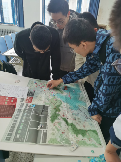军事爱好者协会的大力支持,是面向全校师生开展的“谈兵——国防军事系列读书活动”的系列子活动之一,也是今年5月即将举办的兵棋推演大赛的预热赛。活动采用还原中国人民解放战争济南战役、豫东战役、淮海战役战场态势的三种战役类兵棋,还原中国人民解放战争北方战局和南方战局的两种战略类兵棋,以及还原美苏“冷战”的一种国际战略类兵棋,共六种兵棋展开。