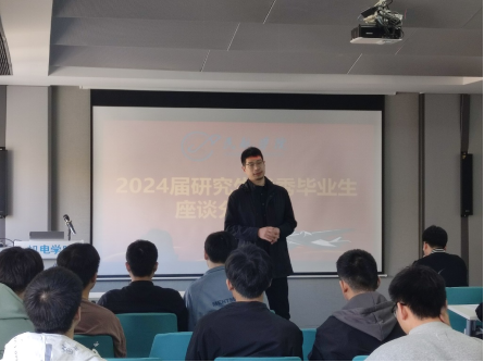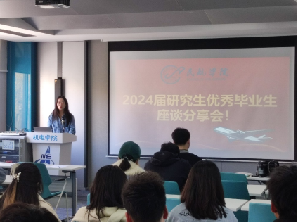 在航空楼B410会议室举行了2024届研究生优秀毕业生座谈会。学院党总支副书记张龙、硕士研究生辅导员孟岭超、优秀毕业生代表以及部分美女视频