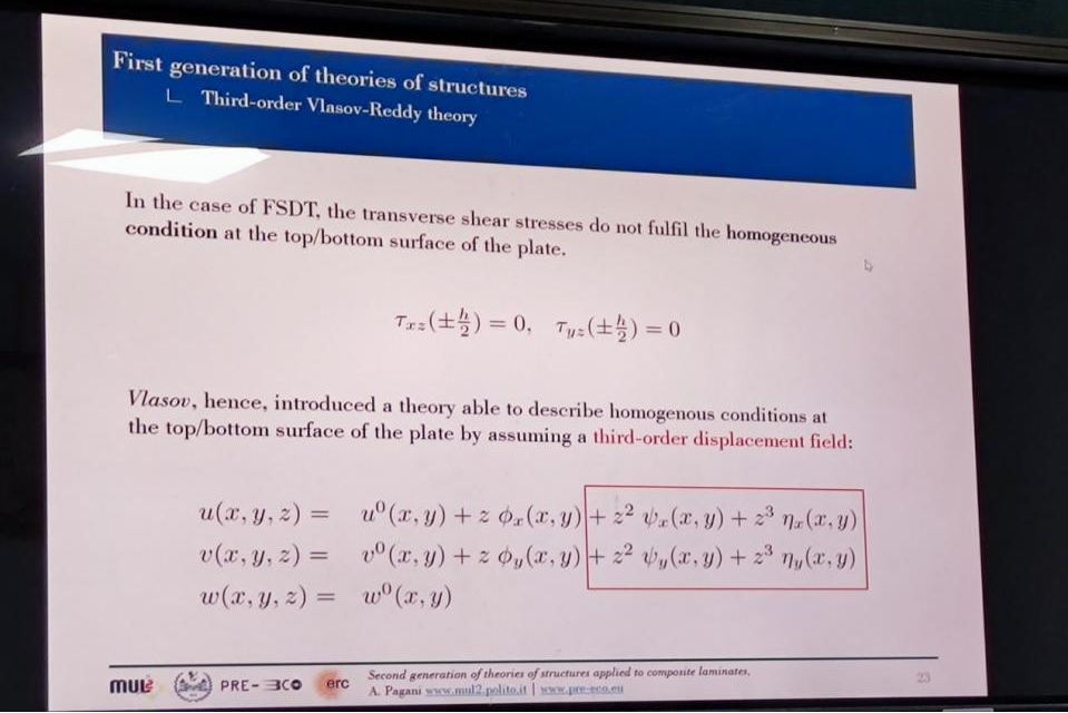 4月10日,Alfonso Pagani副教授为学院师生作了题为《Secondgeneration of theories of structures applied to compositelaminates》的专题报告。他结合对复合材料层合板结构等方面的研究,首先回顾了复合材料层合板的第一代结构理论,分析了其优势以及需要改进的不足之处。随后,介绍了正在探索的第二代结构理论,并提供了实现从微观到宏观尺度具有可扩展和高精度的高阶有限元的可能性。最后AlfonsoPagani副教授通过问答的形式,对层合板结构中的详细应力分析和失效行为、纤维增强复合材料的多尺度渐进失效、屈曲和后屈曲等方面,与线上师生做了沟通和交流。