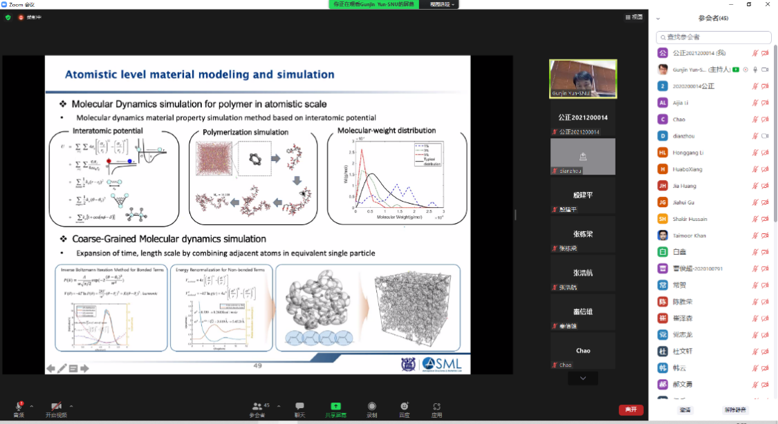 Gun-JinYun教授、AlfonsoPagani副教授的报告丰富细致,视角独特,引发了线上师生的共鸣,使师生收获良多。通过本次学术讲座活动,既增强了学院师生对复合材料领域最新研究进展的认识,又开拓了师生的学术视野,对学院国际合作交流氛围的提升也起到了促进作用。